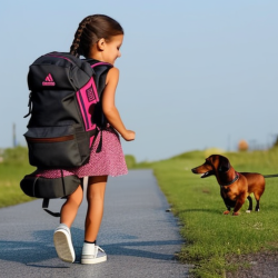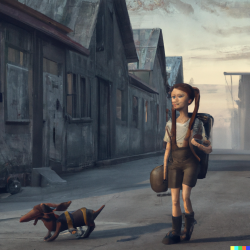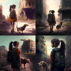 One of the tests that I ran was for the text: “A 10-year-old girl with a backpack and a ponytail walking down a post-apocalyptic street with a dachshund”. The results were pretty impressive for this test, although Canva seems to have a rosy picture of a post-apocalyptic world!